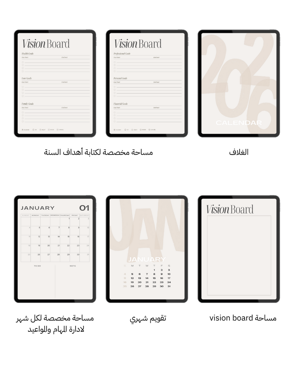 Start 2026 with focus and clarity! This digital planner is your perfect companion for achieving your biggest life and work goals. It includes full monthly calendar pages from January through December 2026, plus detailed sections for planning and tracking goals across 6 key areas: