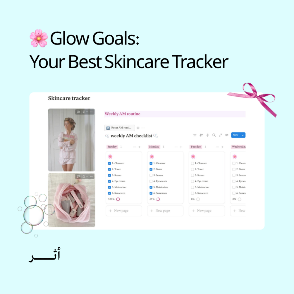Your all-in-one Notion space to build, track, and review your skincare journey — morning to night, product by product! ✨